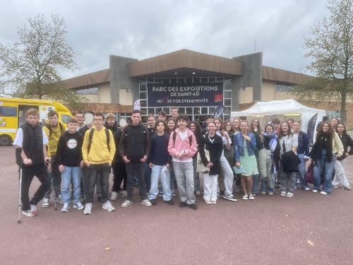 Le vendredi 7 novembre, les élèves de 3ᵉ ont passé la matinée à l’Odyssée des Métiers et de la Formation à Saint-Lô. Ils ont découvert de nombreux stands et échangé avec des professionnels de secteurs variés : esthétique, logistique, laboratoire, agriculture, armée, cuisine ou encore pâtisserie.